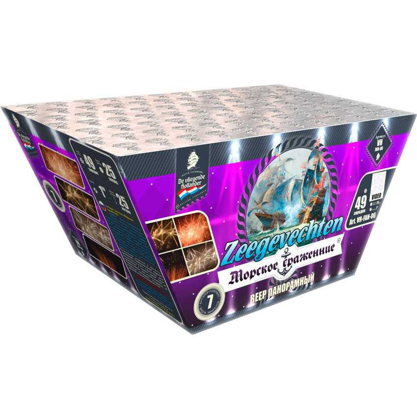 В батареях с количеством мортир от 100 и выше технологически сложно расположить их все под различными углами. Это вызовет увеличение и без того излишне габаритного корпуса, чрезмерное для бытовой пиротехнической батареи среднего ценового сегмента. Поэтому в таких фейерверках чаще всего значительная часть стволов фиксируется вертикально, а между ними устанавливается несколько разнонаправленных мортир под разными углами. Выглядит фейерверк из такой батареи действительно впечатляюще. Вы можете в этом убедиться, если просмотрите демонстрирующие веерные салюты видео. В нашем каталоге практически каждый фейерверк сопровождается видеороликом, так что процесс выбора будет для вас комфортным и нескучным.
